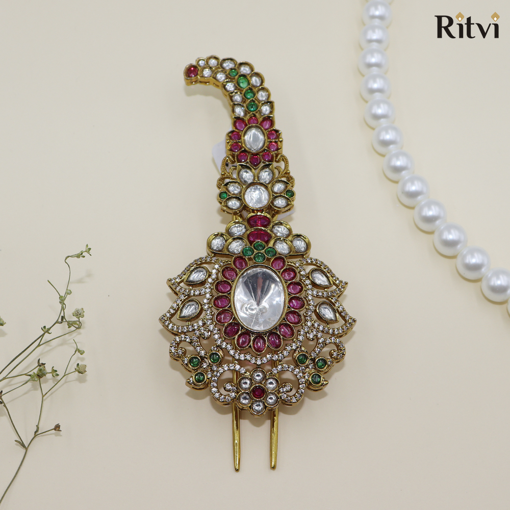 Ritvi Shubh Gold Finished Pearl Kundan Kalgi