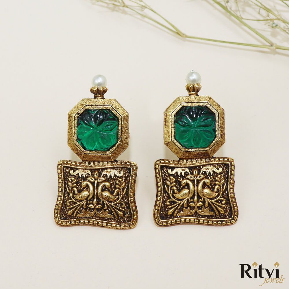 Oxidised Green Earrings
