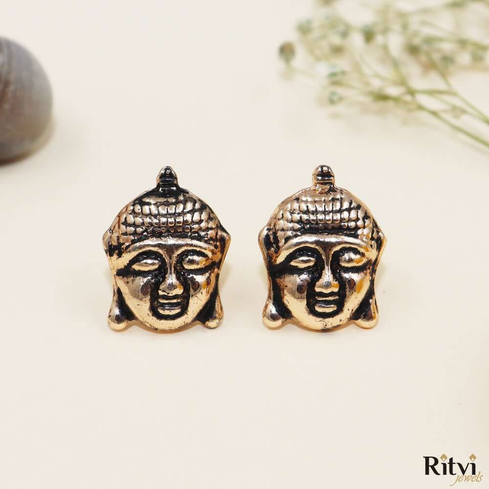 Buddha Gold Oxidised Earrings