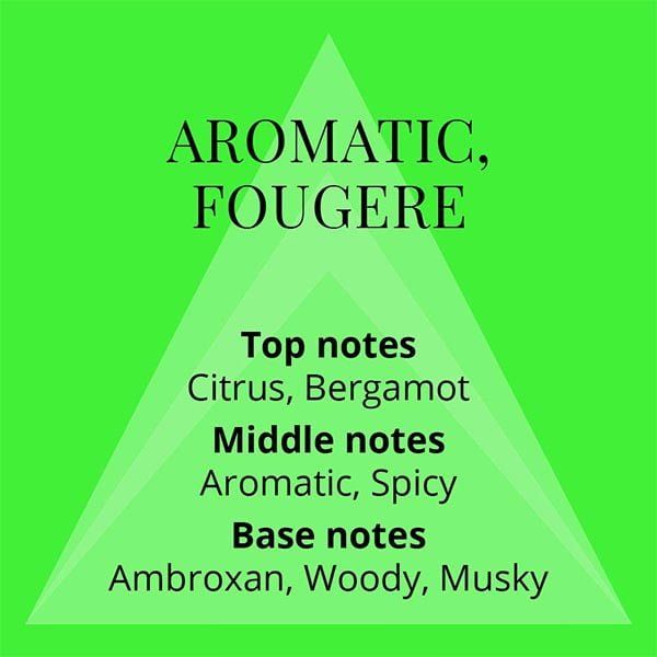The fragrance opens with a zesty burst of lemon, bergamot, and grapefruit, delivering a refreshing and vibrant start that immediately energizes your senses. As it unfolds, the heart reveals spicy pepper, aromatic lavender, and a hint of cardamom, adding complexity and warmth to the composition. The scent settles into a bold and masculine base of cedarwood, amber, and musk, providing a long-lasting and smooth finish.