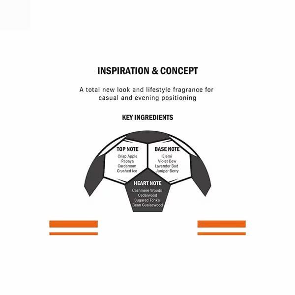 The fragrance opens with a vibrant burst of lemon, lime, and apple, creating a fresh and uplifting introduction that awakens the senses. As it develops, the heart reveals a captivating blend of lavender, rosemary, and cardamom, adding a sophisticated warmth and depth to the scent. The fragrance settles into a rich base of cedarwood, musk, and vanilla, providing a smooth and lasting finish that lingers enticingly on the skin.
