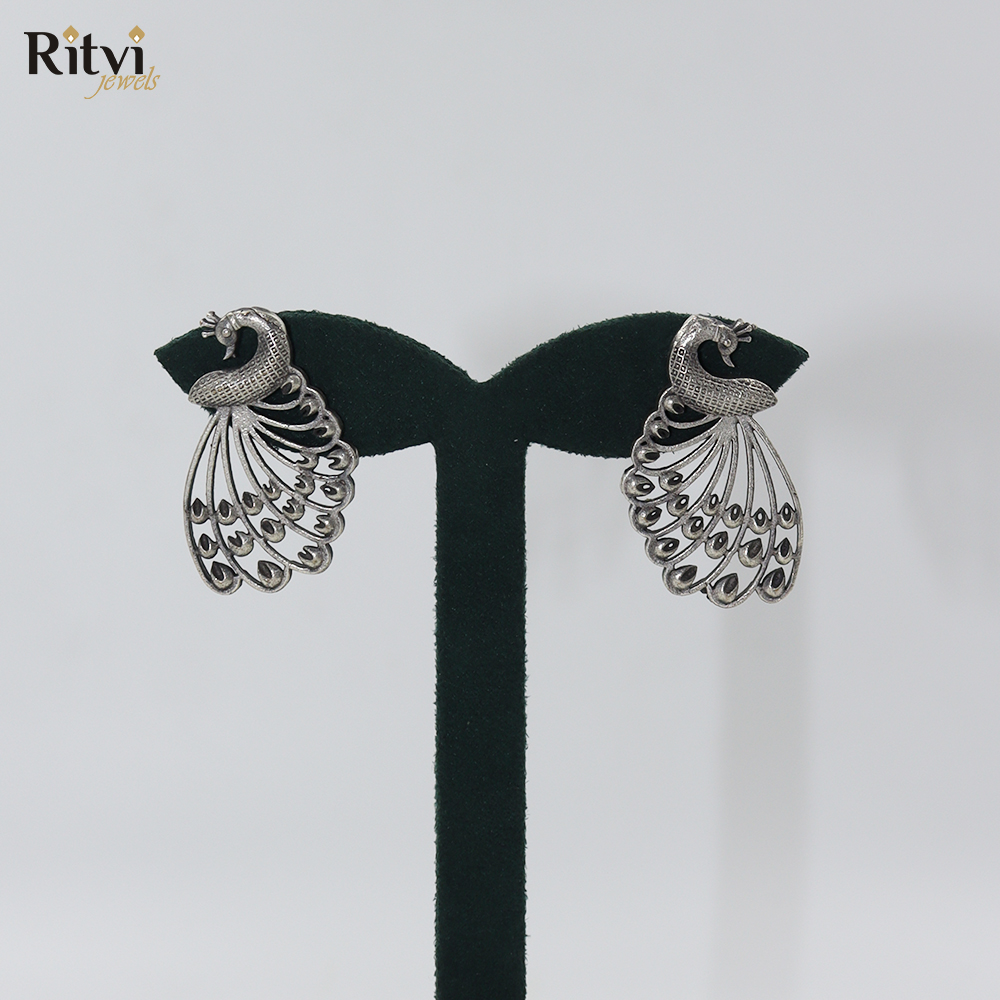 Get oxidised earrings at lowest prices at Ritvi jewels. Inspired by the beauty of the wild, these oxidised peacock earrings capture the spirit of nature in full bloom.