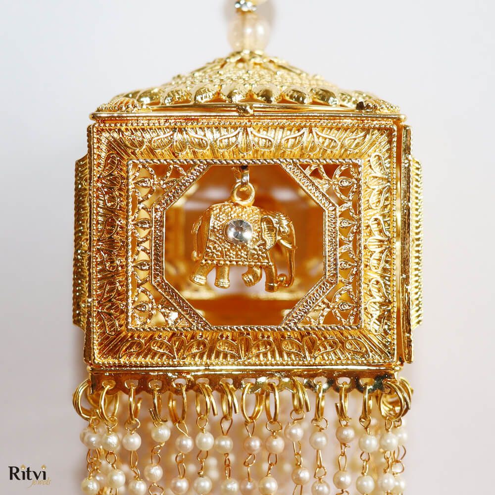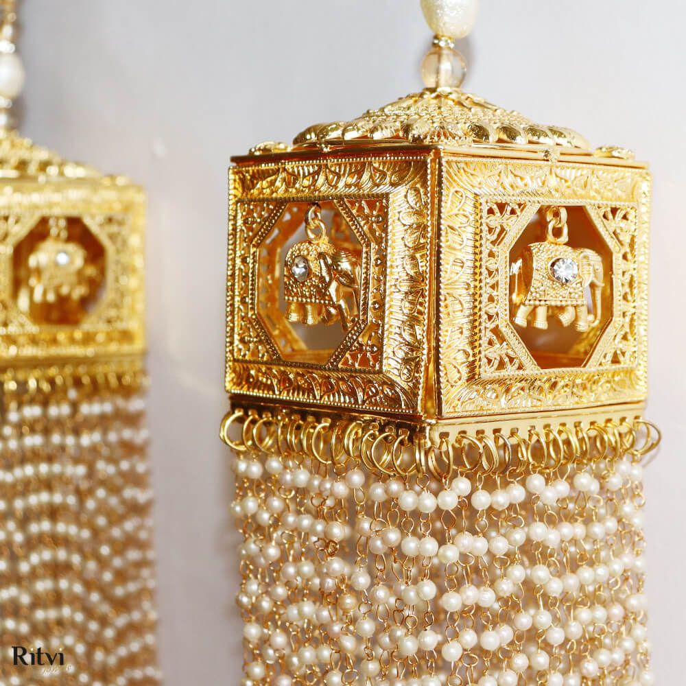 These traditional hanging ornaments also called Kaleera are worn by brides in India and are usually crafted as umbrella-shaped structures with intricate details, including beads, tassels, pearls, shells, butterflies, hearts and sometimes even ghungroos (small bells). The intricate designs, materials, and rituals of Kalira reflect the region’s cultural heritage.Â