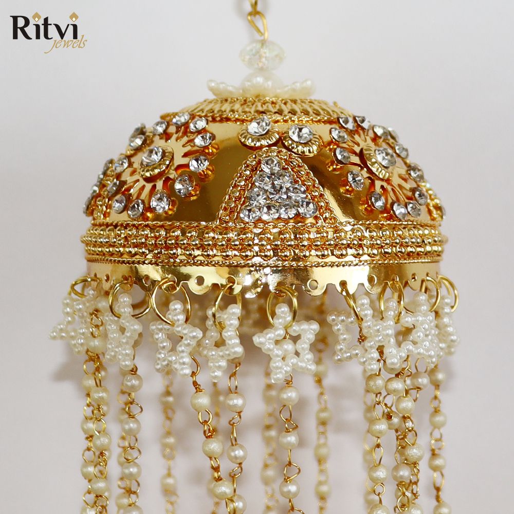 These traditional hanging ornaments also called Kaleera are worn by brides in India and are usually crafted as umbrella-shaped structures with intricate details, including beads, tassels, pearls, shells, butterflies, hearts and sometimes even ghungroos (small bells). The intricate designs, materials, and rituals associated with Kalira reflect the region’s cultural heritage. It’s believed that if a piece of the Kalira falls on someone, they’ll be the next to get married. This tradition adds an element of excitement and anticipation to the wedding celebrations. Bridal Kaleera are not just accessories but are deeply rooted in tradition and cultural symbolism, representing prosperity, happiness, and the bond of marriage. They encapsulate the blessings, hopes, and well-wishes for the bride’s journey into married life.