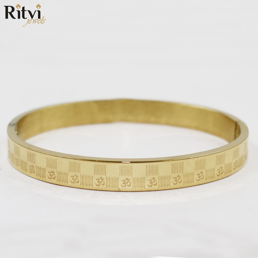 Our Om Dotted-Pattern Gold Men’s Bracelet is a popular accessory for special occasions and cultural events among men. It is typically a solid, circular band with intricate designs or engravings plated in Gold for the rich royal feeling. The bracelet has a comfortable fit and is easy to wear, with a sturdy clasp to keep it secure on the wrist, with an openable lock.