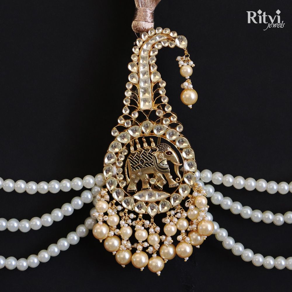 Ritvi Elephant Gold Finished Pearl Kundan Kalgi