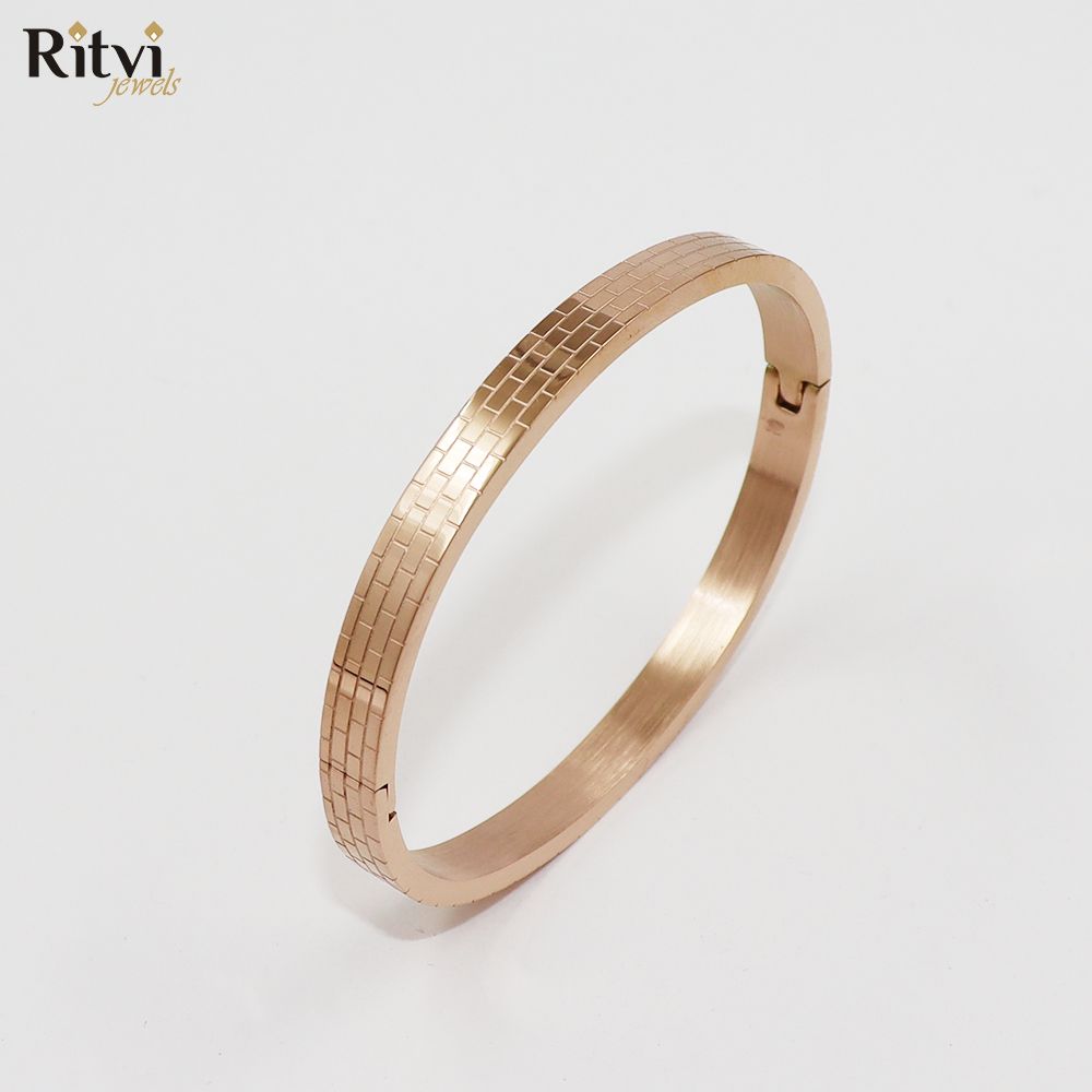Our Wall Band Bracelet For Women with variation check engravings is a popular accessory for special occasions and cultural events among women. It is typically a solid, circular band with intricate designs or engravings plated in Gold for the rich royal feeling. The bracelet has a comfortable fit and is easy to wear, with a sturdy clasp to keep it secure on the wrist, with an openable lock.