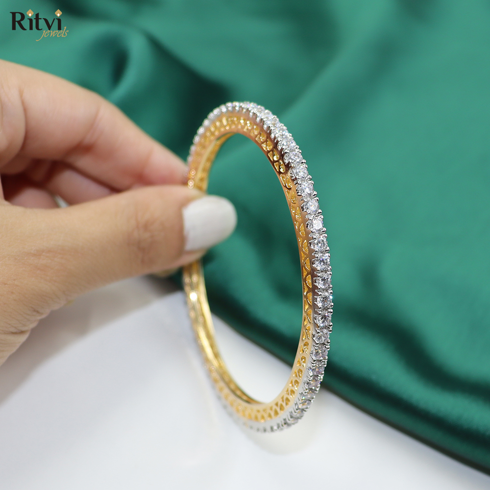 Elegant Bangle Design:Â This beautiful Shailja Diamond bangles studded with Zircon stones. These beautiful bangles give you the elegant look that made everyone heads turn on you. Style yourself with these bangles and pair it with any classic traditional outfit.