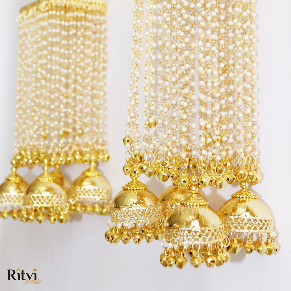 These traditional hanging ornaments also called Kaleera are worn by brides in India and are usually crafted as umbrella-shaped structures with intricate details, including beads, tassels, pearls, shells, butterflies, hearts and sometimes even ghungroos (small bells). The intricate designs, materials, and rituals associated with Kalira reflect the cultural heritage of the region. It’s believed that if a piece of the Kalira falls on someone, they’ll be the next to get married. This tradition adds an element of excitement and anticipation to the wedding celebrations. Bridal Kaleera are not just accessories but are deeply rooted in tradition and cultural symbolism, representing prosperity, happiness, and the bond of marriage. They encapsulate the blessings, hopes, and well-wishes for the bride’s journey into married life.